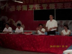 2011年7月26日晚上7点半,广西华南烹饪学校组织召开老生座谈会,教务科魏老师、学生科司老师、后勤保障部万老师、班主任彭老师和姚老师等参加了座谈会。 晚上七点左右,100余名新生陆续到达实操楼六楼多功能教室参加