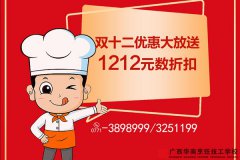 双十一的疯狂意犹未尽 距离12.12的到来已经进入倒计时 双十二特惠来袭 到广西华南烹饪技工学校 一键解锁各种优惠 参与对象: 热爱烹饪,咨询长期专业以及想创业开店的人群 热门专业: 中餐小吃 烧烤烤鱼 早茶米粉 宵